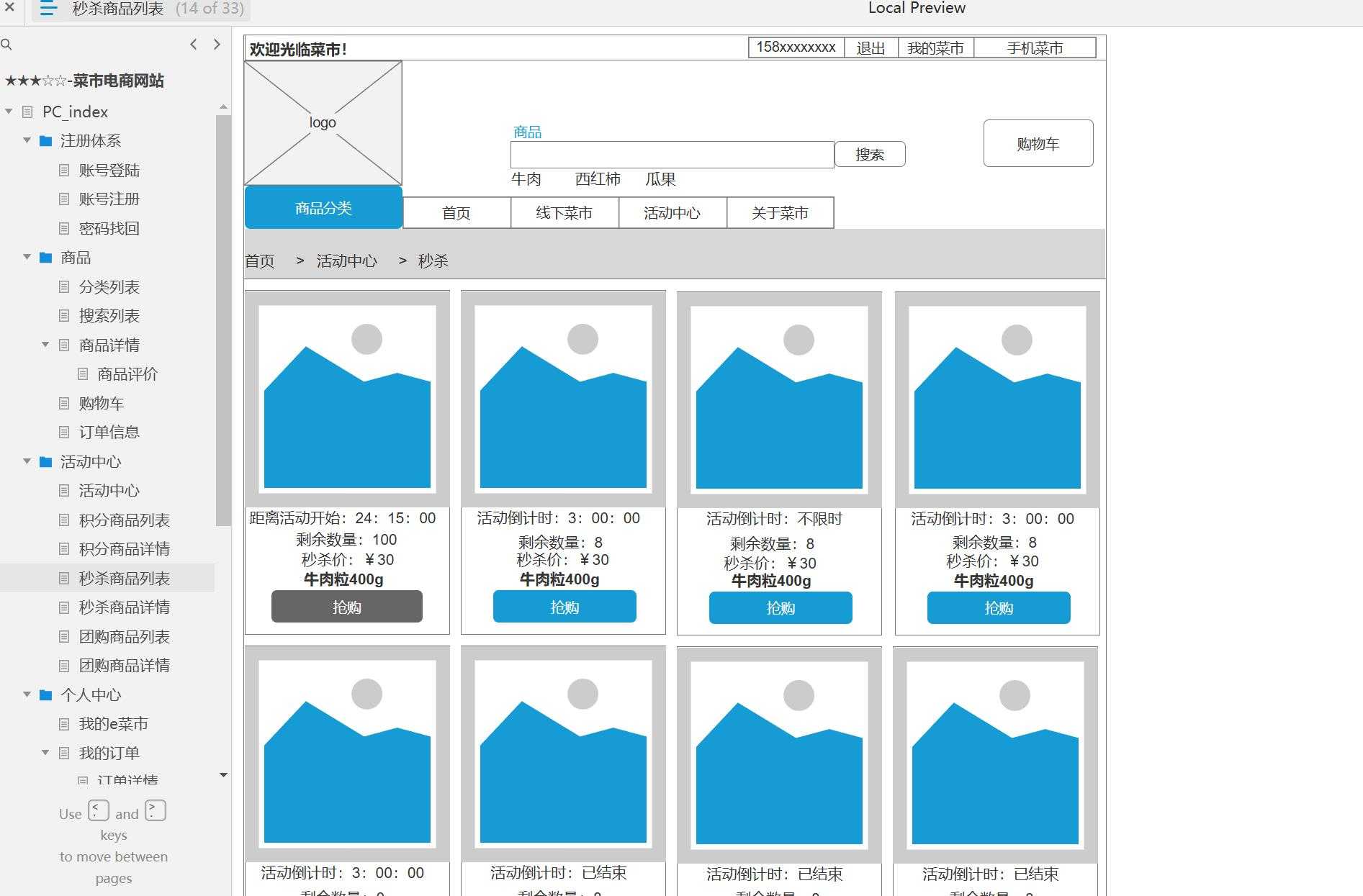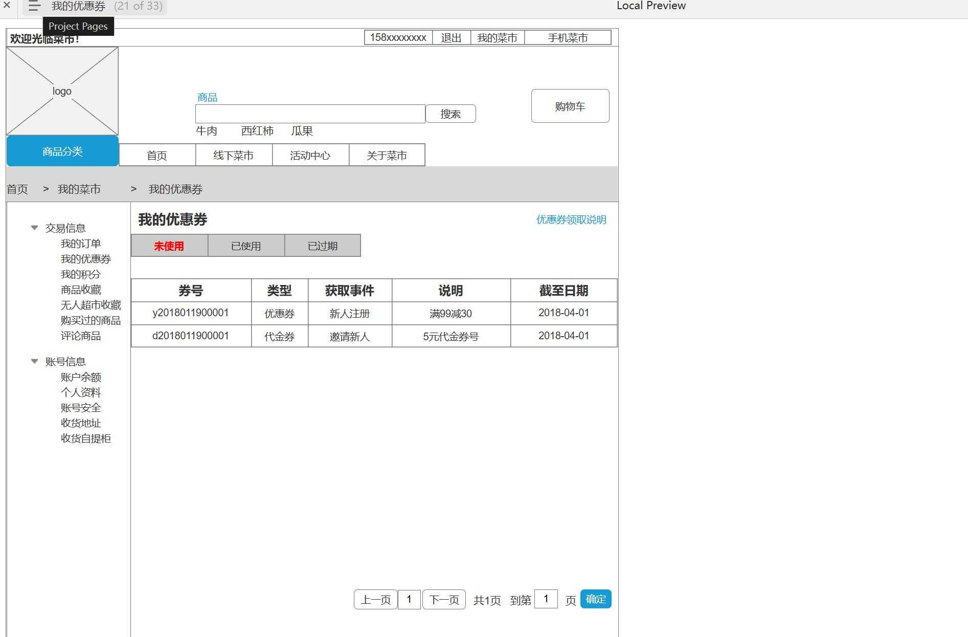 这个原型项目是一个名为“菜市电商网站”的在线购物平台,旨在为用户提供一个便捷、高效的在线购买生鲜食品的渠道。