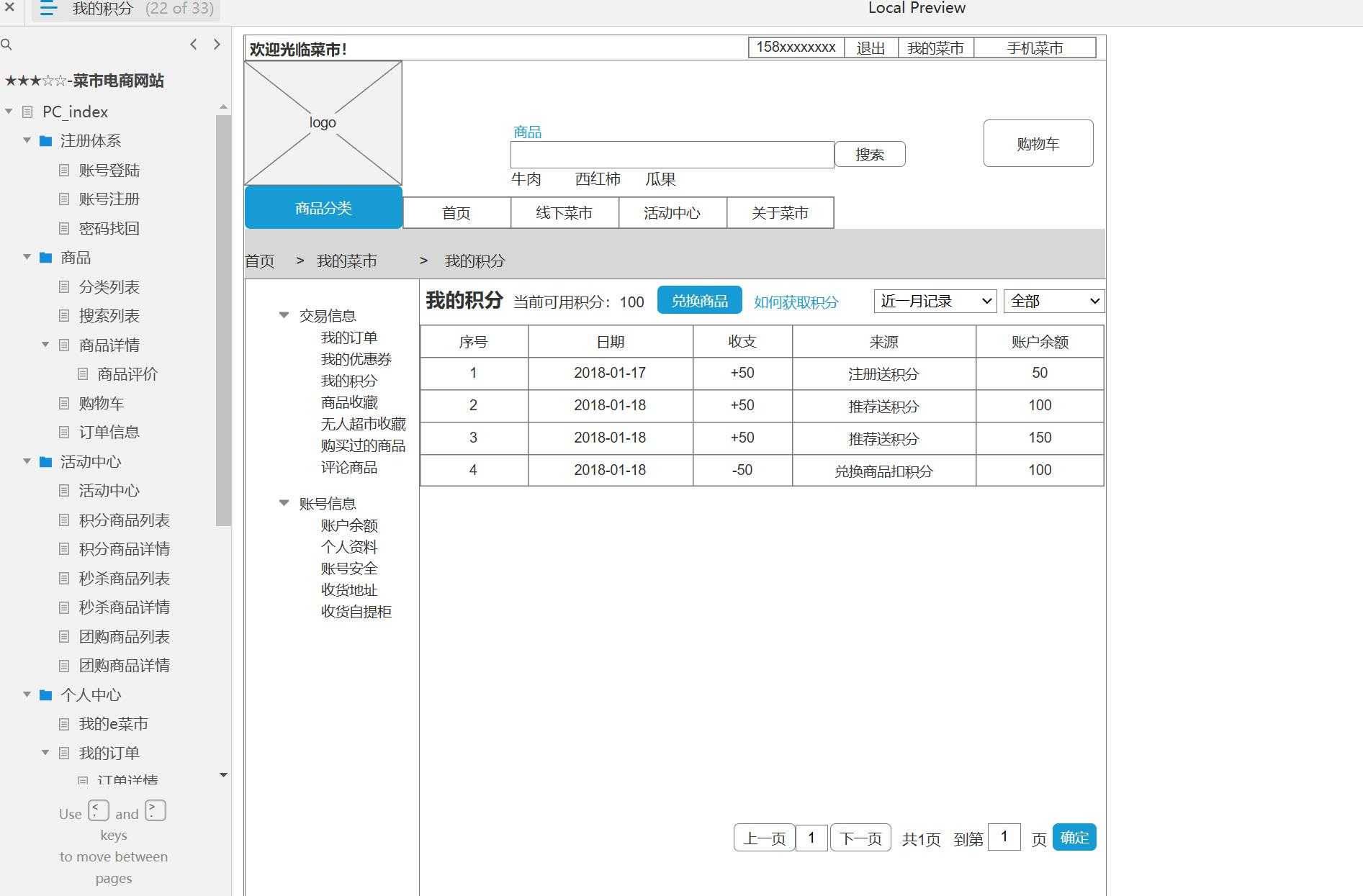PC_index、注册体系、账号登陆、账号注册、密码找回、商品、分类列表、搜索列表、商品详情、商品评价、购物车、订单信息、活动中心、活动中心、积分商品列表、积分商品详情、秒杀商品列表、秒杀商品详情、团购商品列表、团购商品详情、个人中心、我的e菜市、我的订单、订单详情、我的优惠券、我的积分、商品收藏、购买过的商品、评论商品、评论、账户余额、充值、个人资料、修改绑定手机、账号安全、收货地址管理、维护收货地址