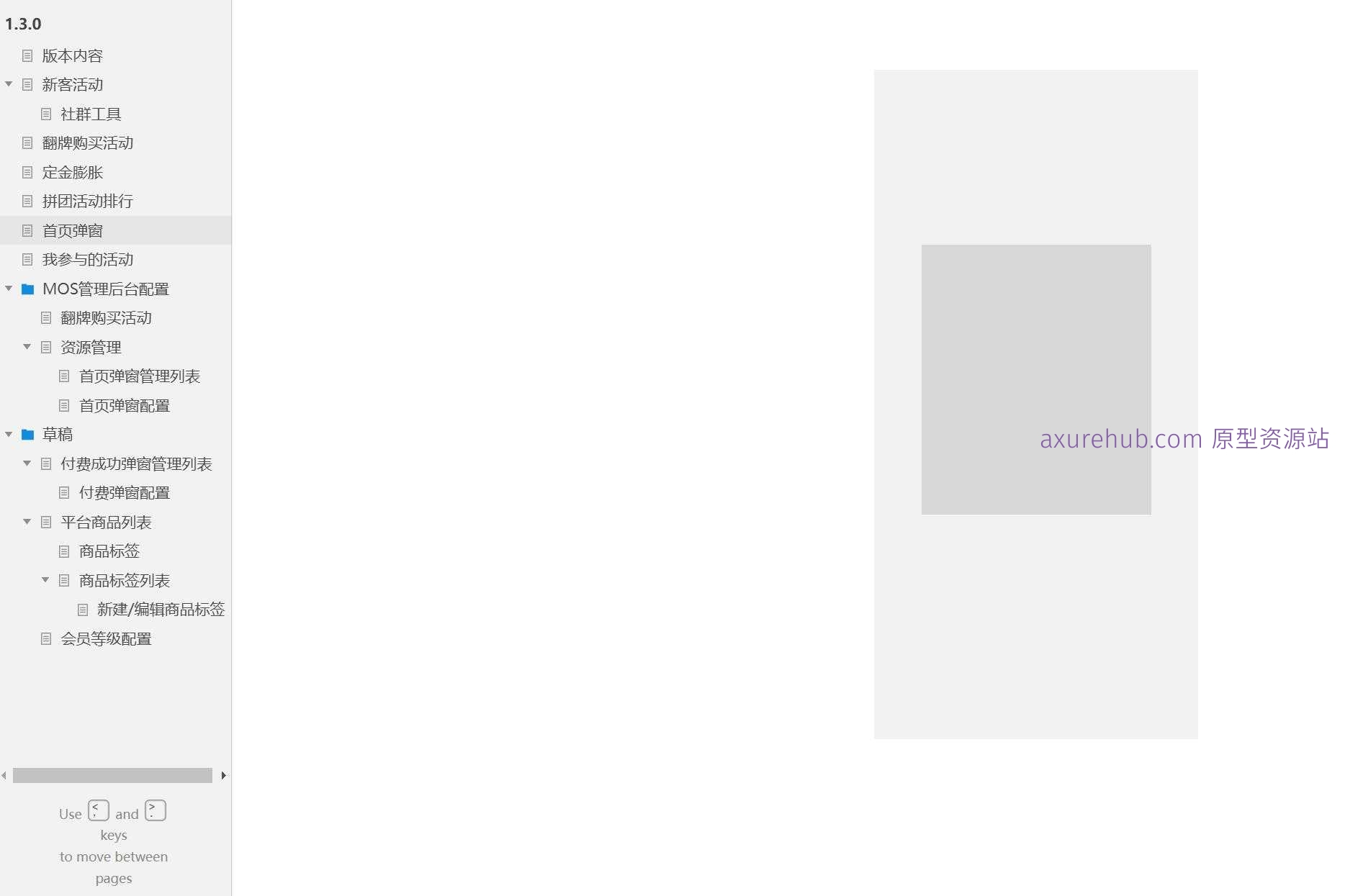 版本内容、新客活动、社群工具、翻牌购买活动、定金膨胀、拼团活动排行、首页弹窗、我参与的活动、翻牌购买活动、资源管理、首页弹窗管理列表、首页弹窗配置、付费成功弹窗管理列表、付费弹窗配置、平台商品列表、商品标签、商品标签列表、新建/编辑商品标签、会员等级配置