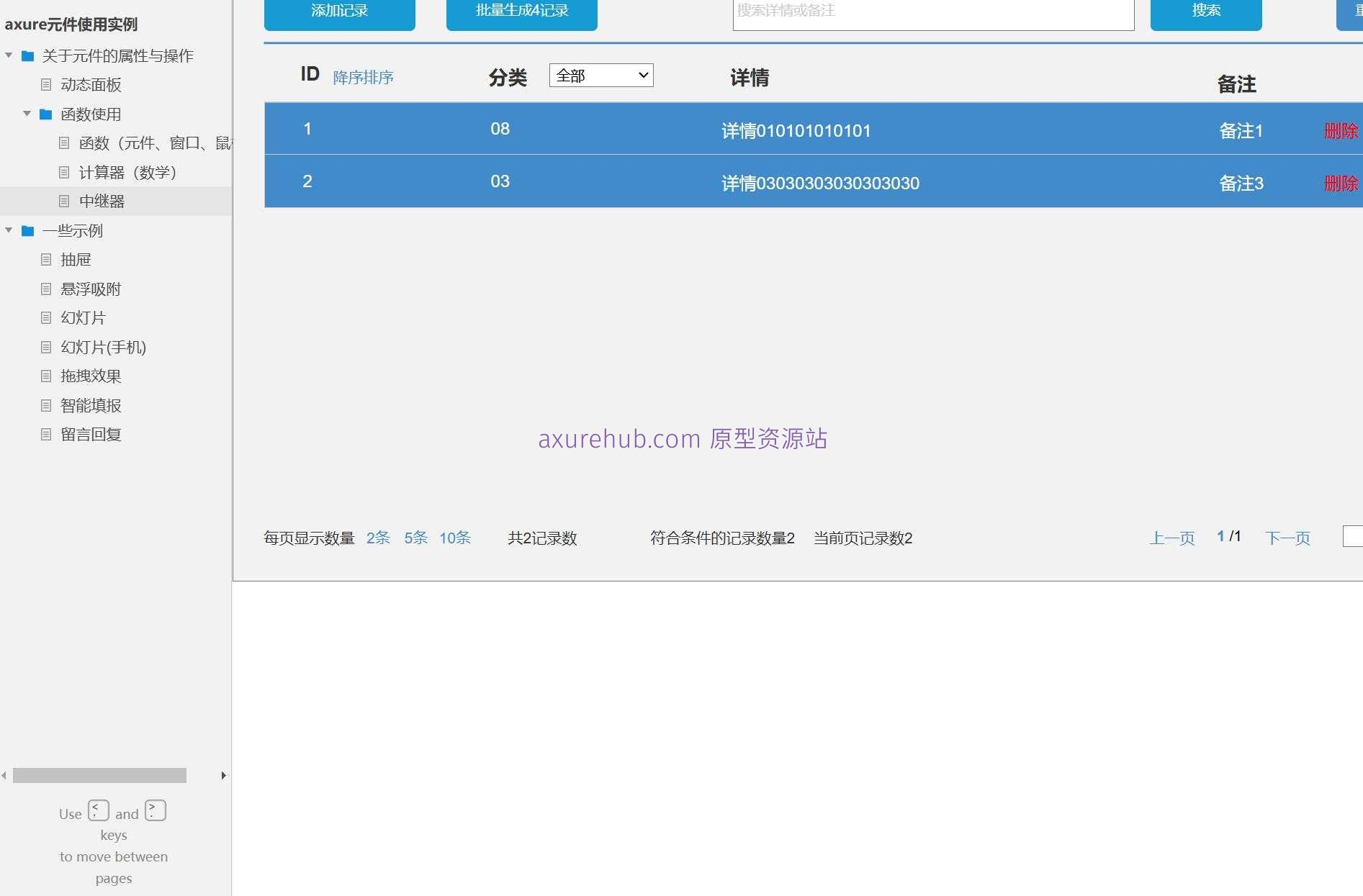 中继器:用于展示列表和表格数据,提高数据展示效率。
