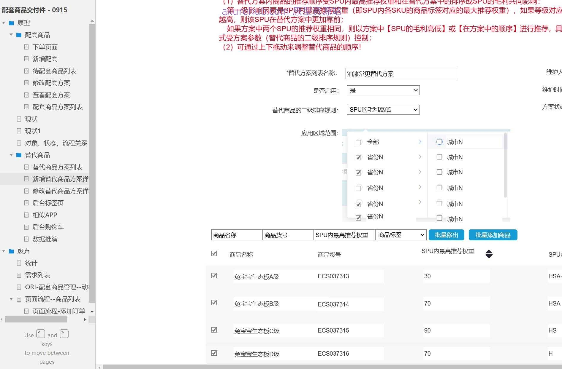 下单页面、新增配套、待配套商品列表、修改配套方案、查看配套方案、配套商品方案列表、现状、现状1、对象、状态、流程关系、替代商品方案列表、新增替代商品方案详情、修改替代商品方案详情 (1)、后台标签页、相似APP、后台购物车、数据推演、统计、需求列表、ORI-配套商品管理–动态、页面流程–商品列表、页面流程-添加订单